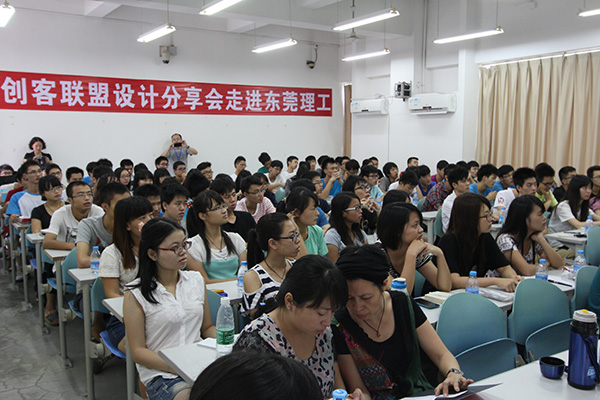 創客聯盟訊(記者 王柱輝)學生如何培養自身的設計能力?企業如何培養年輕設計師群體?被譽為“第三次微型工業革命”的3D打印技術前景如何?9月17日上午,由東莞市創客聯盟網絡科技有限公司主辦的“創客聯盟·設計分享會”在東莞理工學院松山湖校區舉行。會議邀請了深圳市生活匯貿易發展有限公司(簡稱“HG”)執行董事楊朝順、設計總監謝先生、Delonghi集團的彭工等嘉賓到場,和近百名機械工程學院的學生分享自己設計生涯中的心路歷程。
