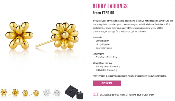 創(chuàng)客聯(lián)盟了解,這些珠寶飾品售價(jià)在50-220英鎊之間,Argos還將為消費(fèi)者配上精美的禮品盒。生財(cái)有道的Argos并非匆忙推出該項(xiàng)目,其在線平臺由Innovate UK公司合作開發(fā),產(chǎn)品的設(shè)計(jì)和制造則有3D打印專家Digital Forming的幫助。